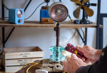 Des réalisations sur mesure, à partir d'objets vous appartenant ou bien en réalisant une lampe ou un objet déco à partir d'une envie particulière, une idée que vous avez.