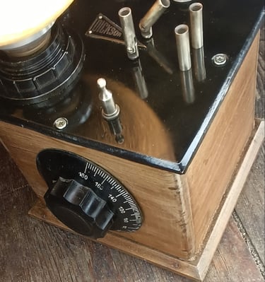 Ancien Voltmètre restauré et transformé en belle lmpa de bureau avec un bouton variateur d'éclairage.