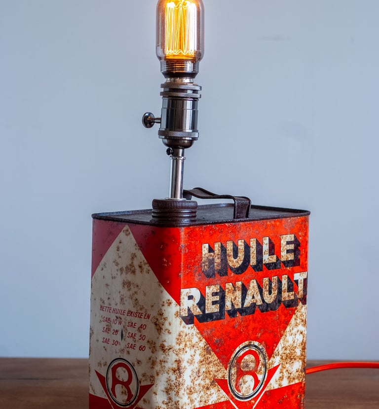 Objets transformés, meubles et lampes uniques.
